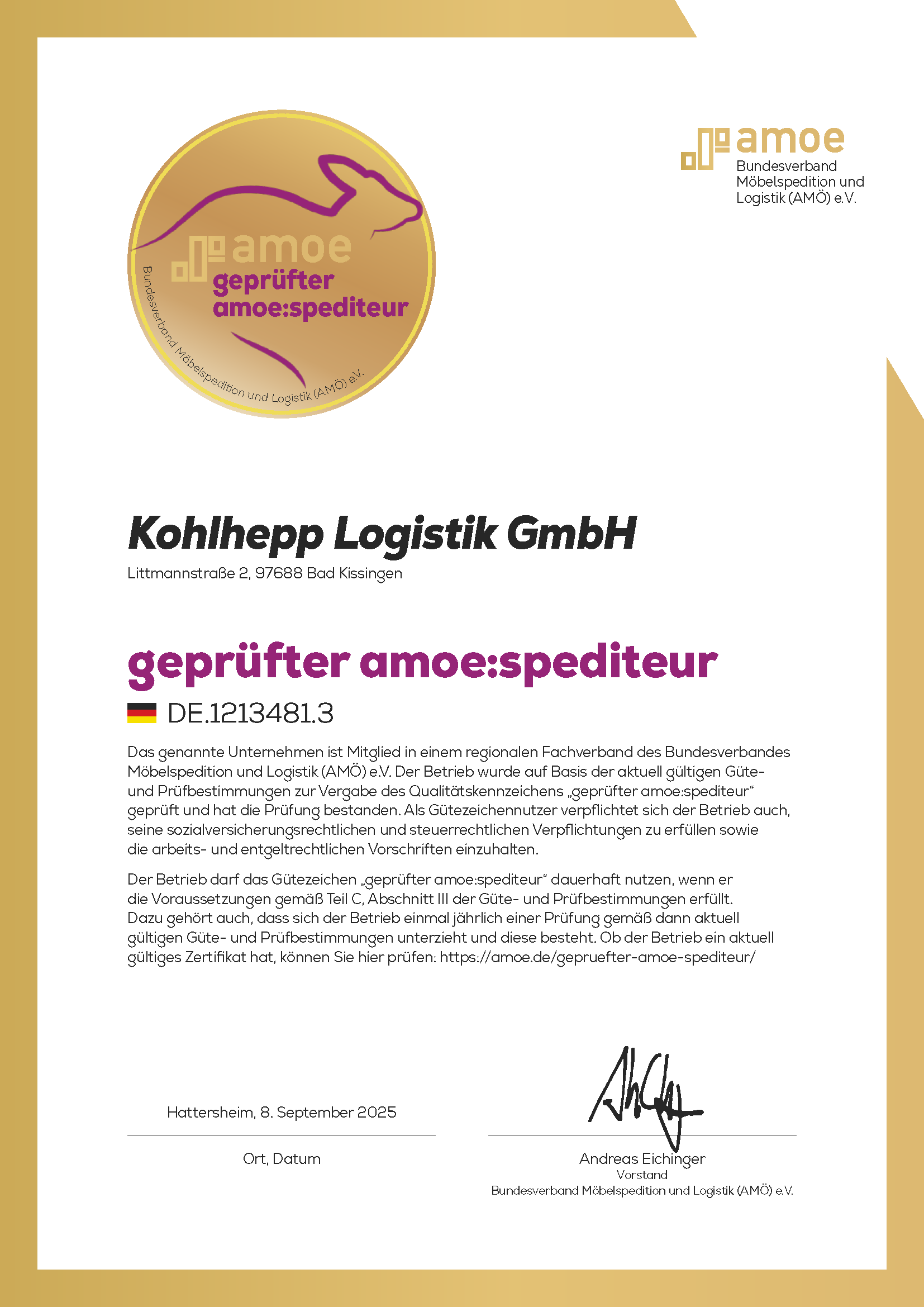 Wir nehmen an Streitbeilegungsverfahren vor einer Verbraucherschlichtungsstelle teil. Zuständig ist die „Schlichtungsstelle Umzug“ beim Bundesverband Möbelspedition und Logistik (AMÖ) e.V.Schulstraße 53, 65795 Hattersheim
